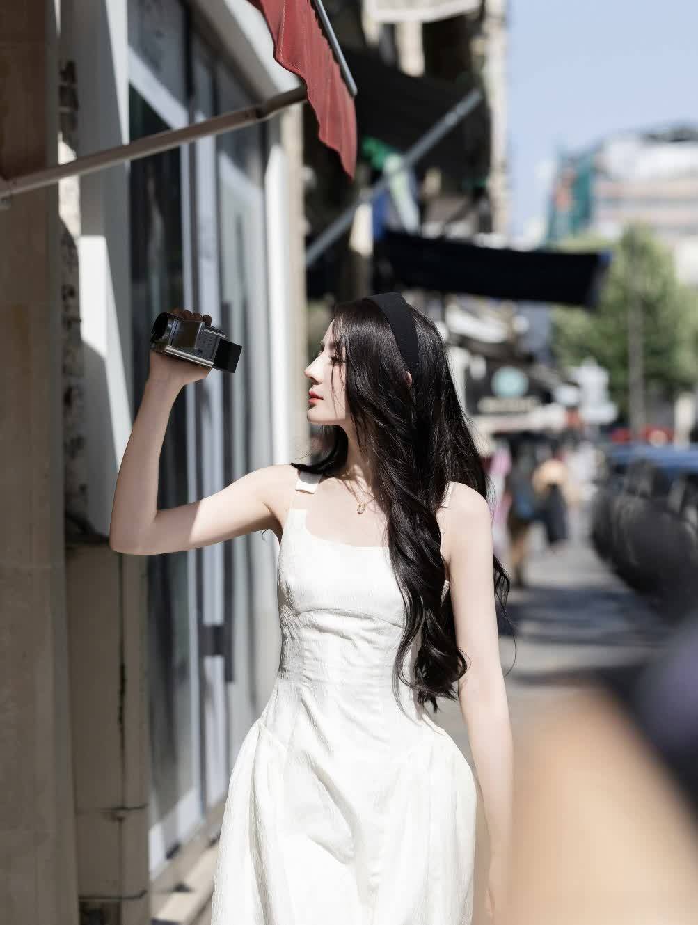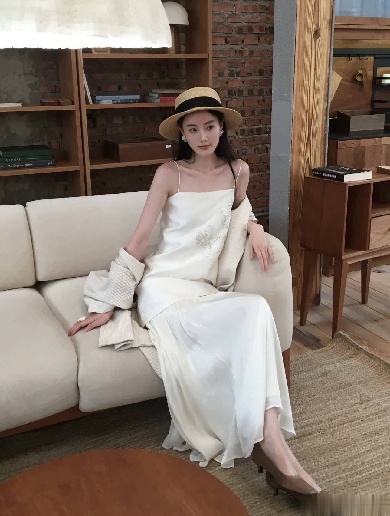 热巴为某品牌拍摄的广告上的小白裙穿搭是女神级别的。修身款纯棉连衣裙+长发飘飘,清纯校花即视感,自带清冷、优雅气质。