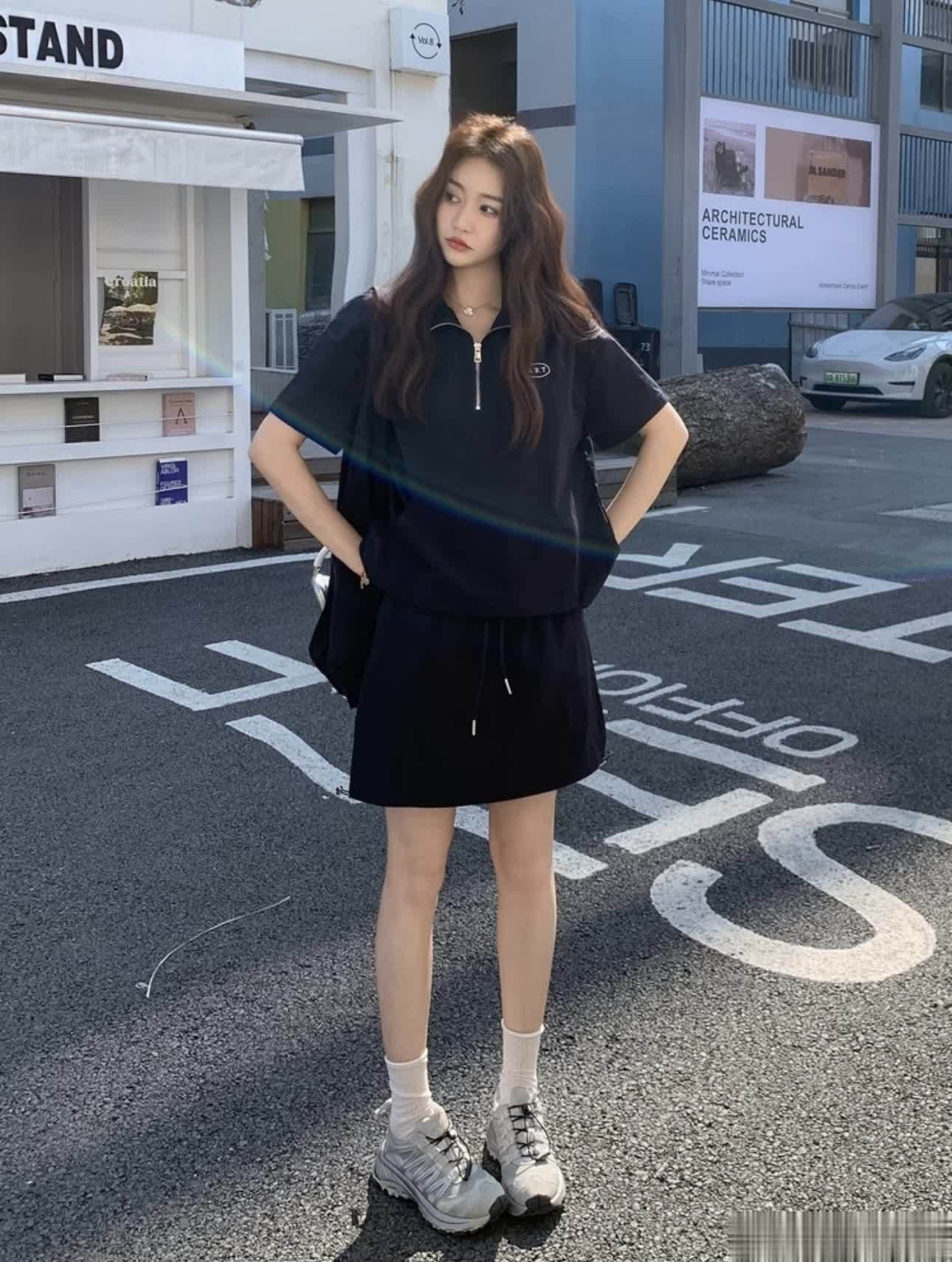 夏天的休闲风或者运动风穿搭最好选择短款的裙子/裤子,不仅能展现腿部线条和比例,还能有效缓解炎热天气带来的黏腻。
